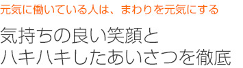 スタッフが暗いお店は、どんなに料理が美味しくても行きたくなくなるものです。社員教育の一環として、開店前の元気朝礼として発声練習、笑顔の練習を毎日行っています。毎日行うことで、スタッフひとりひとりに笑顔と元気なあいさつが習慣化され、その習慣が行動を変えていきます。元気になりたいお客様は飛梅に来れば、元気になれますよ。